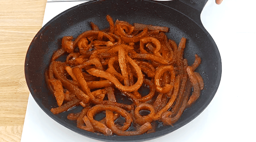 | 원재료명 및 함량 | 돼지껍데기68.49%(국내산),돼지불고기양념장[고추장{밀가루(밀:미국산,호주산),탈지대두분},액상과당,백설탕,정제수,혼합간장{아미노산액(탈지대두:외국산,미국,인도,중국 등),사과퓨레{사과(국산),비타민C},배퓨레{배(국산),비타민C},L-글루탐산나트륨(향미증진제),산도조절제,올레오레진캪시컴,잔탄검,파프리카추출색소],콩식용유[콩기름{외국산(미국,브라질,파라과이 등)}99.99%,규소수지],고춧가루,캡사이신[폴리소르베이트80,변성전분,주정,비타젠S,구연산,파라옥시안식향산에틸(보존료),자몽종자추출물] | ||