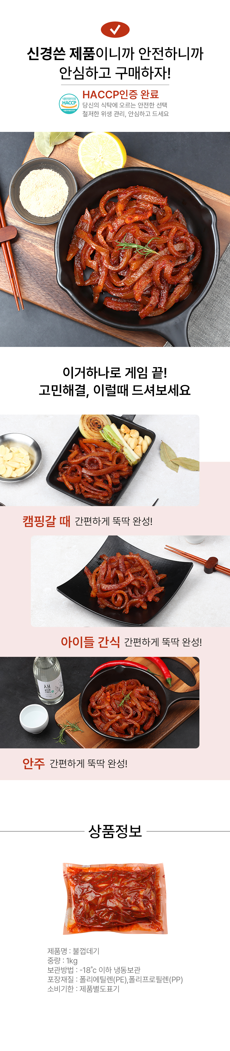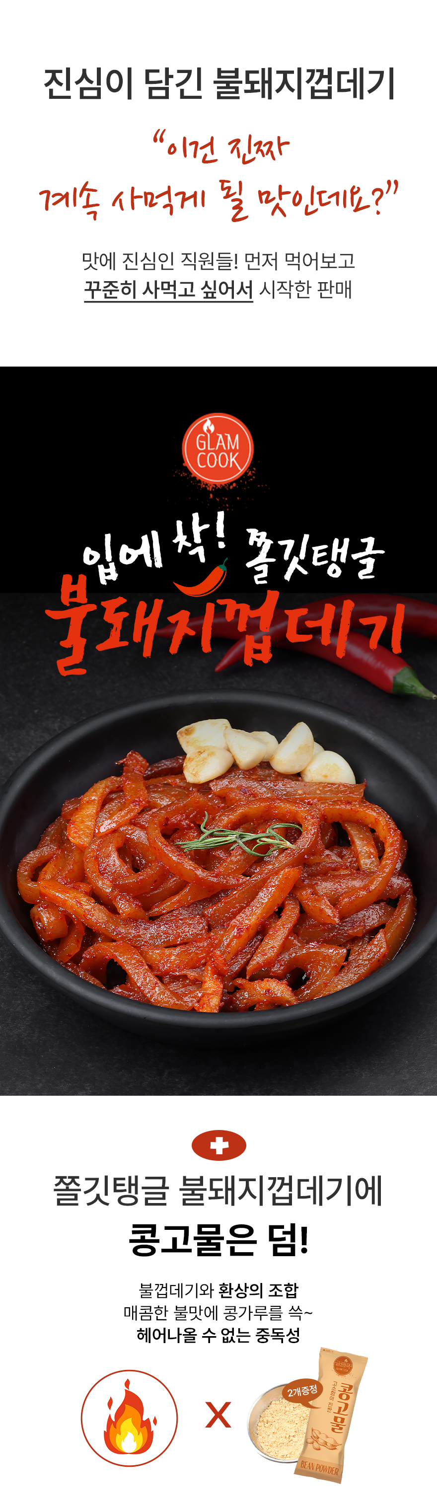 | 원재료명 및 함량 | 돼지껍데기68.49%(국내산),돼지불고기양념장[고추장{소맥분(밀:미국산,호주산)},기타과당,설탕,혼합간장{아미노산액(탈지대두(외국산))},고추믹스],콩식용유{콩기름(외국산:미국,브라질,파라과이등)},고춧가루,캡사이신 | ||