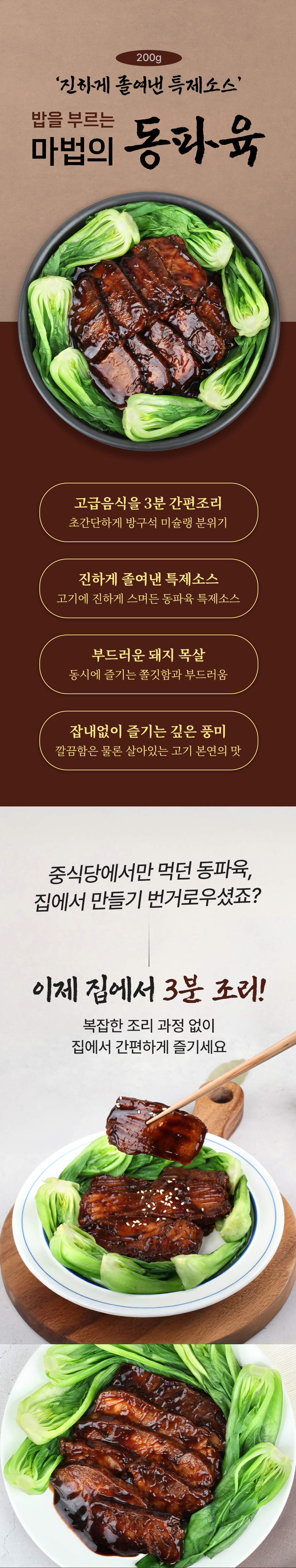 | 원재료명 및 함량 | 돼지고기64.96(외국산:스페인,독일,오스트리아),글램쿡중화풍소스[설탕,물엿,간장소스{산분해간장(탈지대두(수입산),양조간장(중국산),소스1(굴:국산)}],불고기맛시즈닝,쇠고기다시다,대파농축액,양파농축액,백설탕,혼합제제(폴리인산나트륨),대두단백,다진마늘,마늘가루,에리토브산나트륨(산화방지제) | ||